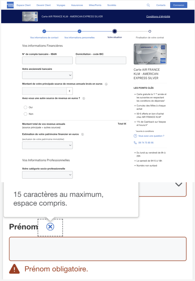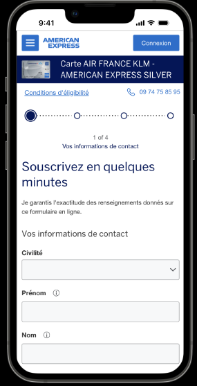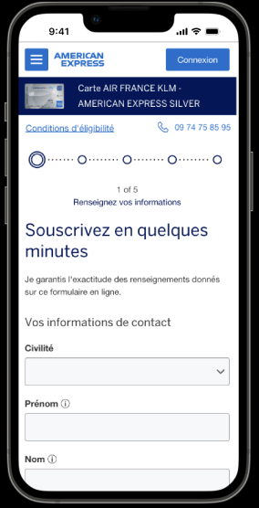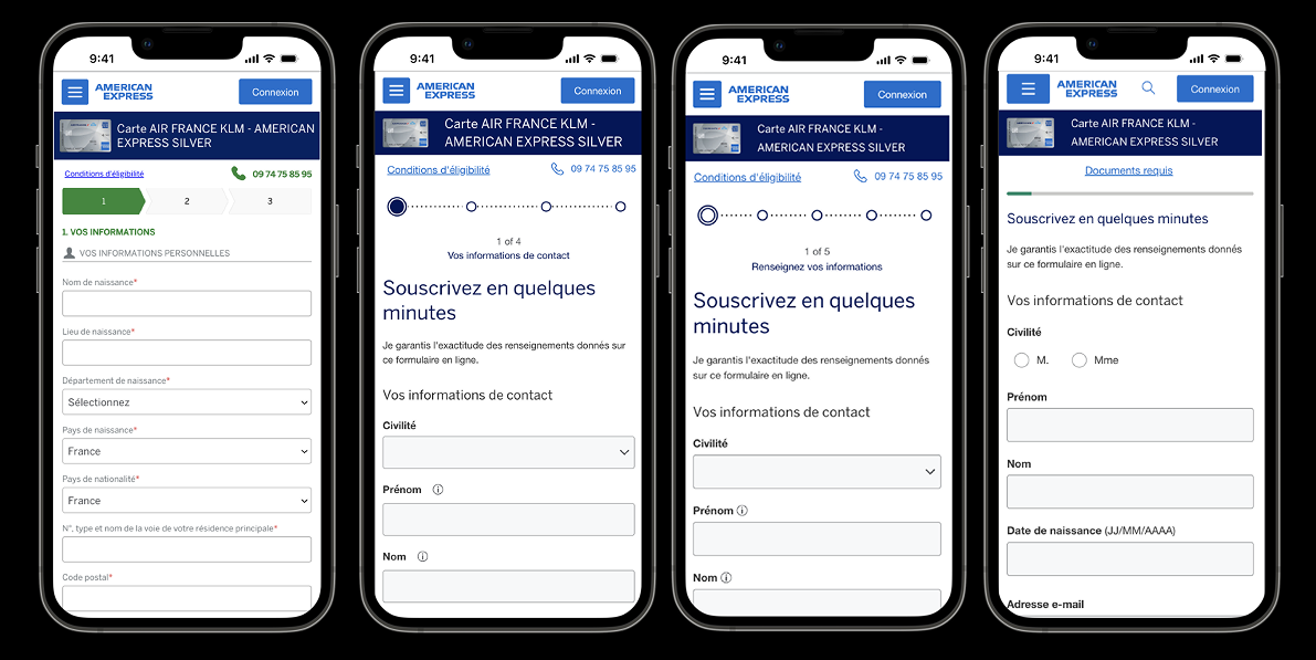 Lead designer for French market overseeing 2 senior designers. Executed and launched a design uplift and a series of features to optimize legacy eApply journeys for 4 credit card products for Air France, American Express, and Amazon.