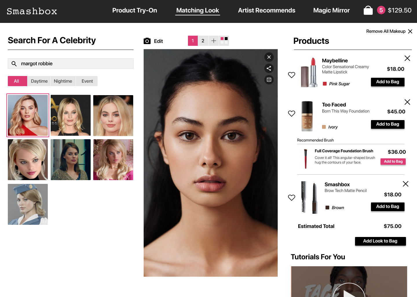 Celebrities and influencers now have a lot of impact on the makeup industry and their customers. Many makeup users look up to these people for trends in makeup. This feature aims to bridge the gap between celeb makeup and purchasing the actual or closest tools they use from one of Estée Lauder’s brands.